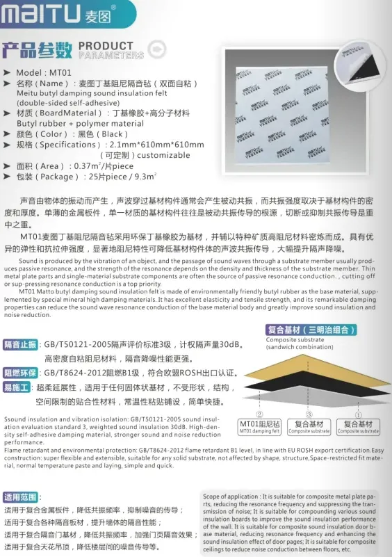 公司具有先进、专业的生产设备,拥有专业高素质的生产技术团队。专注于生产、销售,环保隔音材料、减震材料、隔热、防水、吸音材料。产品广泛用于汽车、高铁动车组、飞机、船舶、机械、录音棚、KTV及声学设计领域。