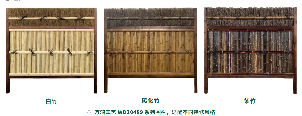 代表型号:WD20489 系列(W150×H120+20cm,20cm为地下埋深),适合庭院分区、阳台遮挡;WD03-11白色竹围栏(尺寸含SW60×H60cm、W90×H91cm 等),轻盈简约,适配现代家居风;